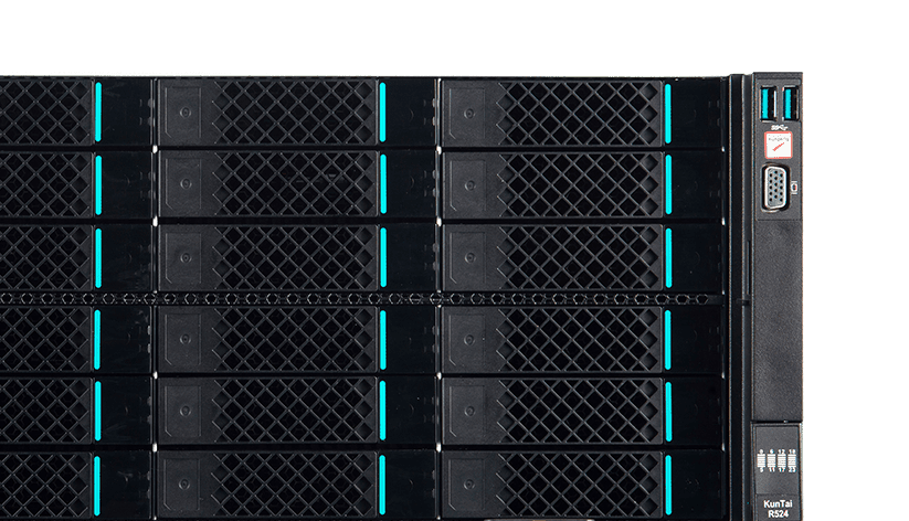 KunTai R524 存储型服务器是拼搏在线数码基于鲲鹏处理器推出的新一代 ARM数据中心服务器。。主要面向存储业务,,具有海量存储、、、、高性能、、、低功耗以及易扩展的特点,,适合为大数据分析、、软件定义存 储等应用场景的工作负载进行髙效加速。。